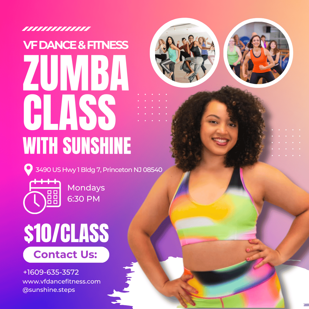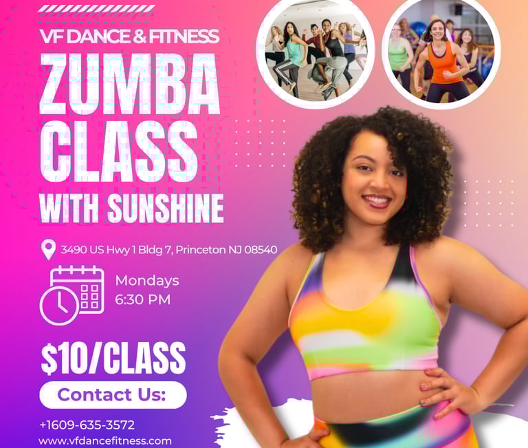Join us at VF Dance & Fitness for energizing and exciting Zumba classes led by the one and only Sunshine! Whether you're looking to burn calories, tone up, or simply enjoy an hour of fun, Zumba is the perfect workout for all ages and fitness levels.